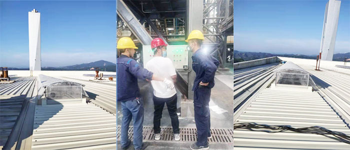 8月19日把產(chǎn)品發(fā)貨贛州,安裝人員 隨后趕至現(xiàn)場(chǎng)開安全教育會(huì)議,查看現(xiàn)場(chǎng)時(shí)發(fā)現(xiàn)廠房?jī)?nèi)設(shè)備進(jìn)不去,鑫友們商議好布線方案經(jīng)電廠副總同意后開始施工布線。高度太高,從九層穿線至三層,安裝人員克服困難,倍道而進(jìn),爭(zhēng)取早日交付。