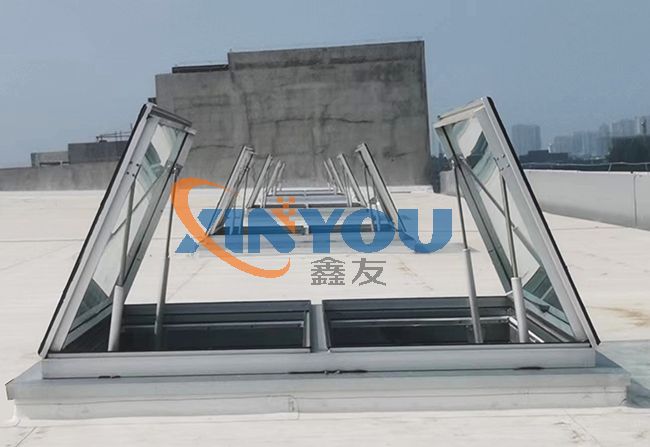 此類天窗有三種控制方式:通用控制方式、智能控制方式、智能網(wǎng)絡(luò)控制方式。以上控制方式均可消防聯(lián)動(dòng)控制,與消防報(bào)警連接。適用于采光為主必要時(shí)開(kāi)啟的大型生產(chǎn)車間、大廳、體育館等。