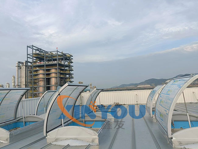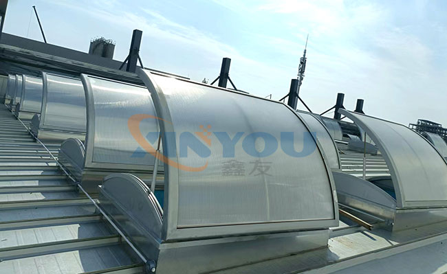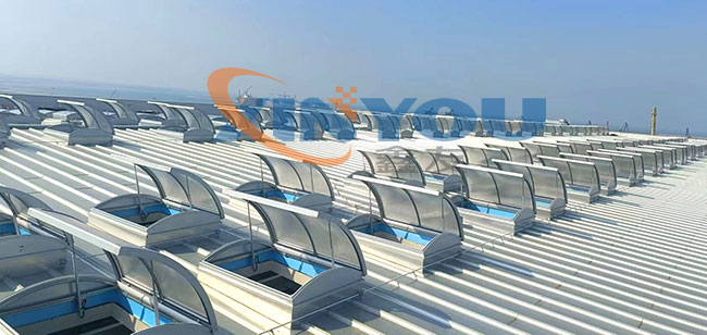 圓拱形的設計,外觀優(yōu)美、通風排煙兼顧自然采光,開啟角度一般為30度到45度***開啟角度為90°。