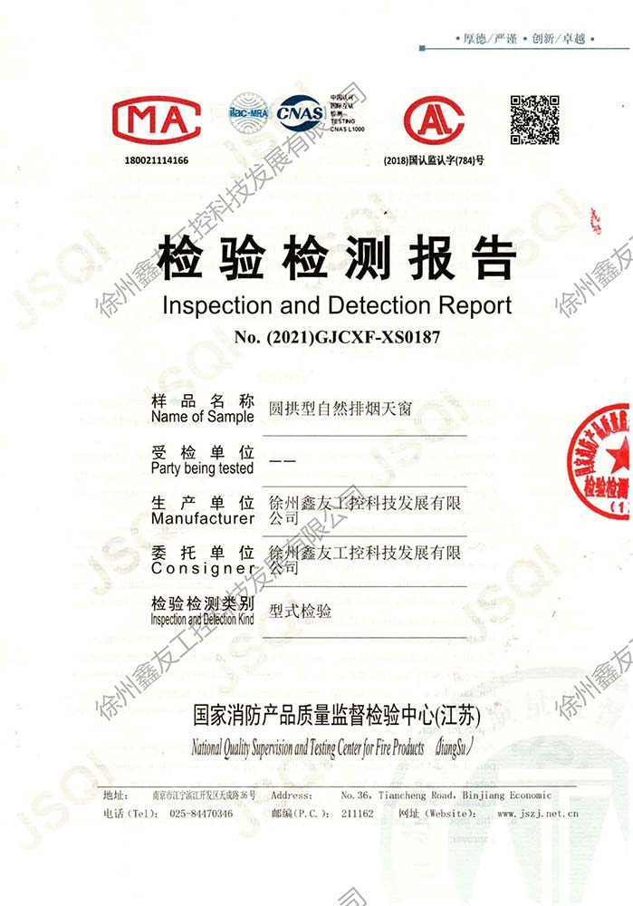 圓拱型電動(dòng)排煙天窗檢測(cè)報(bào)告190