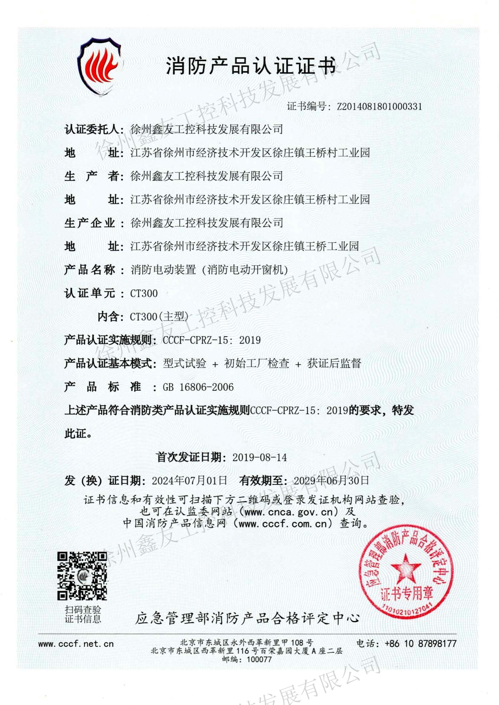 消防產(chǎn)品認(rèn)證CH1000CH750CH550(2019.8.14-2024.8.13)