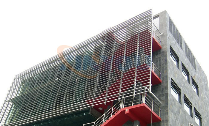 Hollow structure designed, spindle blade with double cambered surface,high strength and large span. Reach sunshade, lighting, embellishment used onglass curtain wall. Powered by linear actuator to run the blades.