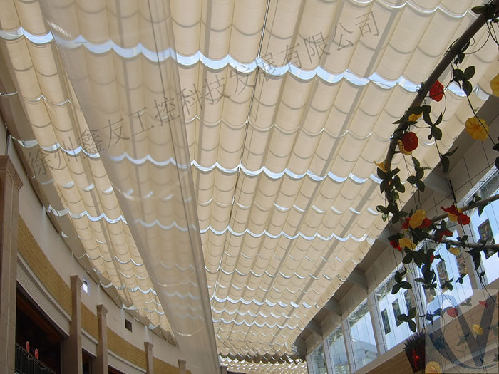 效 果:天棚簾完全展開(kāi)后,面料呈現(xiàn)均勻的波浪效果。